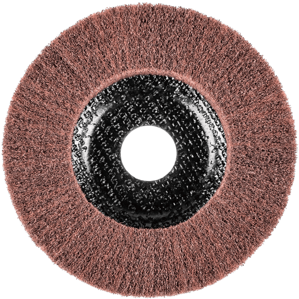 POLINOX brúsne kotúče sa skladajú z netkanej polyamidovej abrazívnej hmoty, do ktorej je integrovaný abrazívny zrn. Netkané abrazívne lamely sú prilepené na podložku z sklenenej tkaniny, čo znamená, že kotúče môžu byť použité naopak. Dlhá životnosť náradia je dosiahnutá hustým usporiadaním lamiel. Nástroj je navrhnutý na prácu na veľkých plochách s rýchlosťou nastaviteľnými uhlovými brúskami.