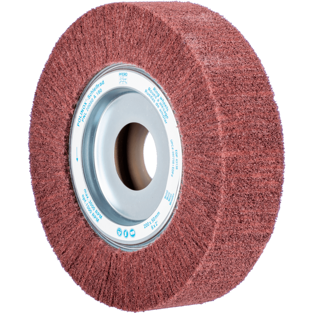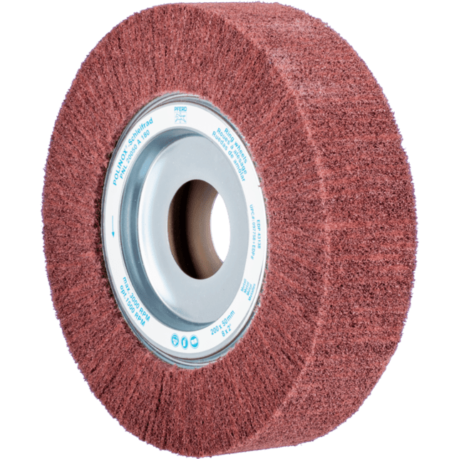 POLINOX neosadené brúsne kotúče pozostávajú z netkanej polyamidovej abrazívnej hmoty, do ktorej je integrovaný abrazívny zrn. Netkané abrazívne lamely sú usporiadané radiálne. Dlhá životnosť nástroja je dosiahnutá hustým usporiadaním lamiel. Tento nástroj sa najmä používa na prácu na veľkých plochách.