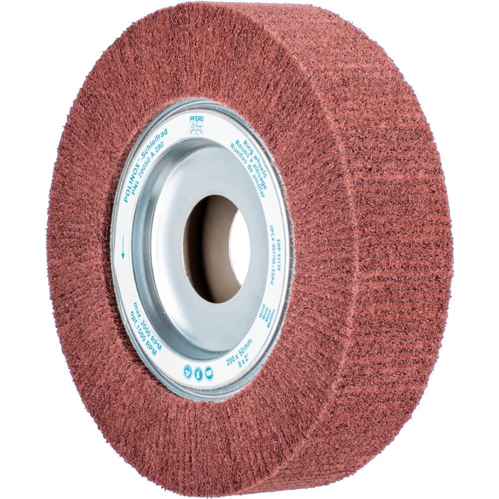 POLINOX neosadené brúsne kotúče pozostávajú z netkanej polyamidovej abrazívnej hmoty, do ktorej je integrovaný abrazívny zrn. Netkané abrazívne lamely sú usporiadané radiálne. Dlhá životnosť nástroja je dosiahnutá hustým usporiadaním lamiel. Tento nástroj sa najmä používa na prácu na veľkých plochách.