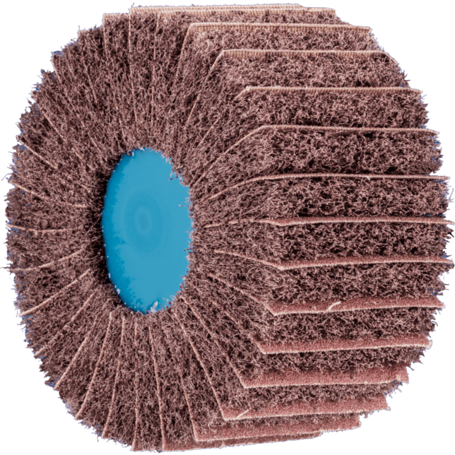 POLINOX neosadené brúsne kotúče pozostávajú z netkanej polyamidovej abrazívnej hmoty, do ktorej je integrovaný abrazívny zrn. Netkaný abrazívny materiál je usporiadaný v niekoľkých radiálnych chlopniach, s abrazívnymi tkaninovými medziľahlými vrstvami. Štruktúra chlopní uľahčuje lepšie odstraňovanie materiálu a dosahuje hrubší povrchový finiš. Nástroj je navrhnutý na prácu na stredne veľkých plochách s rýchlosťou nastaviteľnými uhlovými brúskami a brúskami na zvarové švy a môže byť namontovaný priamo na hriadeľ pohonného systému bez potreby ďalších upínacích zariadení. Tento nástroj sa hlavne používa na prácu na veľkých plochách.