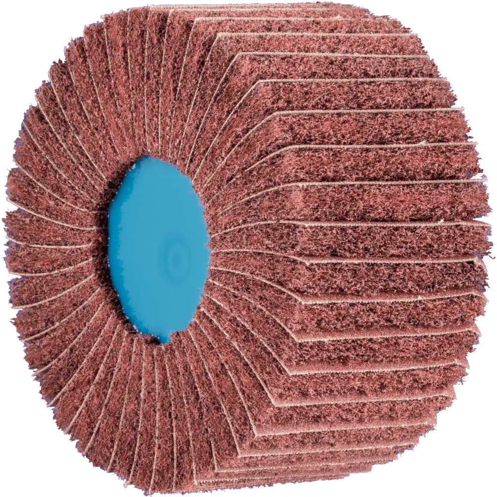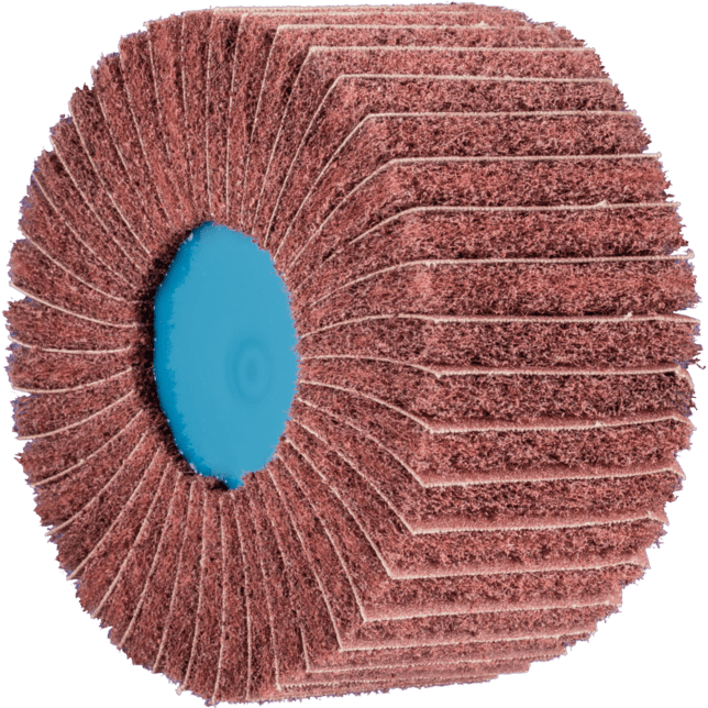 POLINOX neosadené brúsne kotúče pozostávajú z netkanej polyamidovej abrazívnej hmoty, do ktorej je integrovaný abrazívny zrn. Netkaný abrazívny materiál je usporiadaný v niekoľkých radiálnych chlopniach, s abrazívnymi tkaninovými medzi vrstvami. Štruktúra chlopní uľahčuje zlepšené odstraňovanie materiálu a dosahuje hrubší povrchový finiš. Nástroj je navrhnutý na prácu na stredne veľkých plochách s rýchlosťou nastaviteľnými uhlovými brúskami a brúskami na zvarové švy a môže byť namontovaný priamo na hriadeľ pohonného systému bez potreby ďalších upínacích zariadení. Tento nástroj sa hlavne používa na prácu na veľkých plochách.