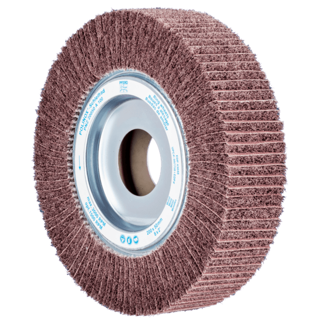 POLINOX neosadené brúsne kotúče pozostávajú z netkanej polyamidovej abrazívnej hmoty, do ktorej je integrovaný abrazívny zrn. Netkaný abrazívny materiál je usporiadaný v niekoľkých radiálnych lamelách, s abrazívnymi tkaninovými medzi vrstvami. Štruktúra lamiel uľahčuje lepšie odstraňovanie materiálu a dosahuje hrubší povrchový finiš.