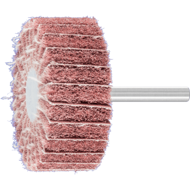POLINOX nasadené brúsne kotúče pozostávajú z netkanej polyamidovej abrazívnej hmoty, do ktorej je integrované abrazívne zrnko. Netkaný abrazívny materiál je usporiadaný v niekoľkých radiálnych chlopniach, s abrazívnymi tkaninovými medziľahlými vrstvami. Táto štruktúra chlopní uľahčuje lepšie odstraňovanie materiálu a dosahuje hrubší povrchový finiš.