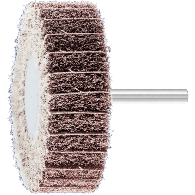 POLINOX nasadené brúsne kotúče pozostávajú z netkanej polyamidovej abrazívnej hmoty, do ktorej je integrované abrazívne zrnko. Netkaný abrazívny materiál je usporiadaný v niekoľkých radiálnych chlopniach, s abrazívnymi textilnými medzi vrstvami. Táto štruktúra chlopní uľahčuje lepšie odstraňovanie materiálu a dosahuje hrubší povrchový finiš.