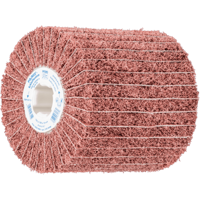 POLINOX brúsne bubny sú obzvlášť vhodné na prácu na veľkých plochách. Nezvarený abrazívny materiál je usporiadaný v niekoľkých radiálnych chlopniach, s abrazívnymi tkaninovými medziľahlými vrstvami. Štruktúra chlopní uľahčuje lepšie odstraňovanie materiálu a dosahuje hrubší povrchový finiš.