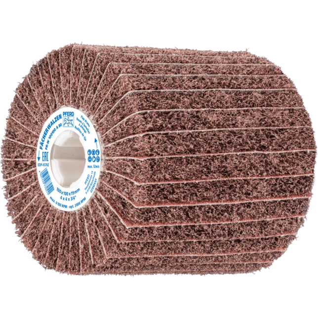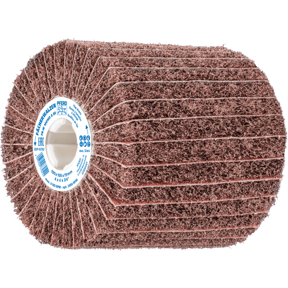 POLINOX brúsiace bubny sú obzvlášť vhodné na prácu na veľkých plochách. Nezvarený abrazívny materiál je usporiadaný v niekoľkých radiálnych chlopniach, s abrazívnymi textilnými medzi vrstvami. Štruktúra chlopní uľahčuje lepšie odstraňovanie materiálu a dosahuje hrubší povrchový finiš.
