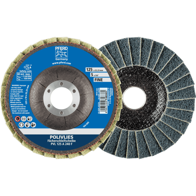 Na všeobecné aplikácie hrubého až jemného brúsenia v priemysle a profesionálnych remeslách. Sú obzvlášť vhodné na prácu na veľkých nerezových (INOX) povrchoch. POLIVLIES zrnitosť 240 F = jemná (modrá)