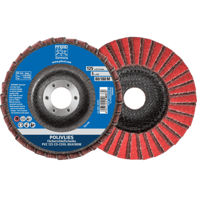 Na agresívne brúsenie s maximálnou rýchlosťou odstraňovania materiálu na tvrdých materiáloch, ktoré zle vedú teplo. Konzistentne vysoký výkon vďaka samoostriacim keramickým oxidu zrnám. Aktívne brúsiace prísady v povlaku podstatne zlepšujú rýchlosť odstraňovania materiálu, zabraňujú upchávaniu a vedú k chladnejšiemu brúsení. Sú obzvlášť vhodné na prácu na veľkých nerezových (INOX) povrchoch. POLIVLIES veľkosť zrna 180 M = stredná (červenohnedá)
