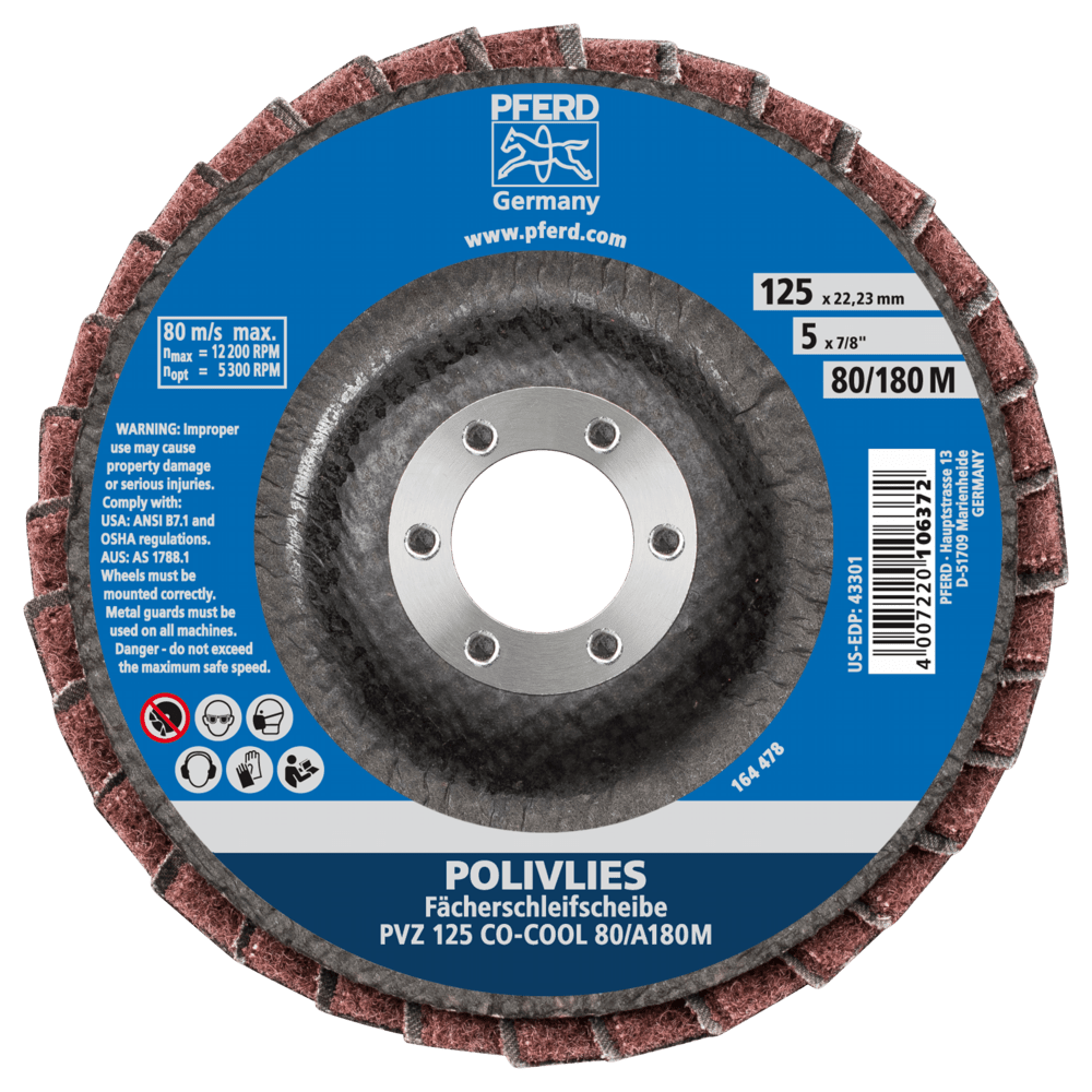 Na agresívne brúsenie s maximálnou rýchlosťou odstraňovania materiálu na tvrdých materiáloch, ktoré zle vedú teplo. Konzistentne vysoký výkon vďaka samoostriacim keramickým oxidu zrnám. Aktívne brúsiace prísady v povlaku podstatne zlepšujú rýchlosť odstraňovania materiálu, zabraňujú upchávaniu a vedú k chladnejšiemu brúsení. Sú obzvlášť vhodné na prácu na veľkých nerezových (INOX) povrchoch. POLIVLIES veľkosť zrna 180 M = stredná (červenohnedá)