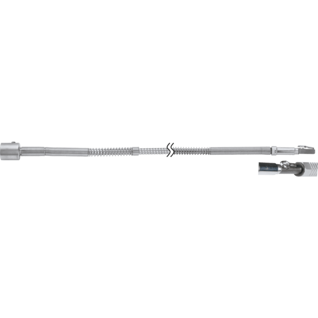 Flexibilné hriadele pozostávajú z troch komponentov, ktoré je možné kombinovať rôznymi spôsobmi: flexibilné jadro (SE), flexibilný plášť (SCH), rukoväť (HA). Flexibilné jadro pozostáva zo štyroch až desiatich vrstiev drôtu, ktoré vyhovujú norme DIN 2076, a je špeciálne navrhnuté na vysokorýchlostnú otáčavú rotáciu v smere hodinových ručičiek. Spojka je bezpečne zasunutá do jadra. Po približne 100 hodinách prevádzky je potrebné jadro flexibilného hriadeľa znovu namazať. Flexibilný plášť pozostáva z oleju odolnej gumy; vnútro je plochá oceľová špirála a vonkajšok je z pevnej gumy. Spojky sú pevne pritlačené a obalené gumovým plášťom ako zosilnenie.;Vďaka nízkym emisiám hluku je možná nepretržitá prevádzka s malou únavou. Vymeniteľné skľučovadlá umožňujú montáž širokej škály nástrojov. Posuvná spojka umožňuje rýchlu výmenu rukoväte. Flexibilný hriadeľ bez rukoväte s duplexnou pružinovou spojkou DPF.