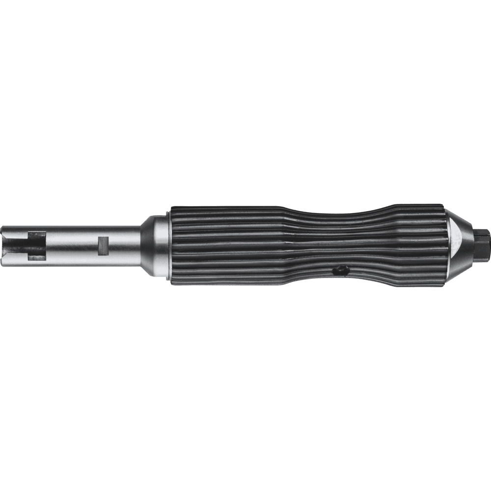Priama rukoväť, môže byť pripojená k flexibilným hriadeľom, s upínaním na strane rukoväte DPF/SRF (DPF = pevná duplexná pružina, SRF = flexibilný expanzný krúžok). 1 kus z nasledujúcich kľúčov: EM SW 9 mm a SKS SW 4 mm, 1 skľučovadlo.
