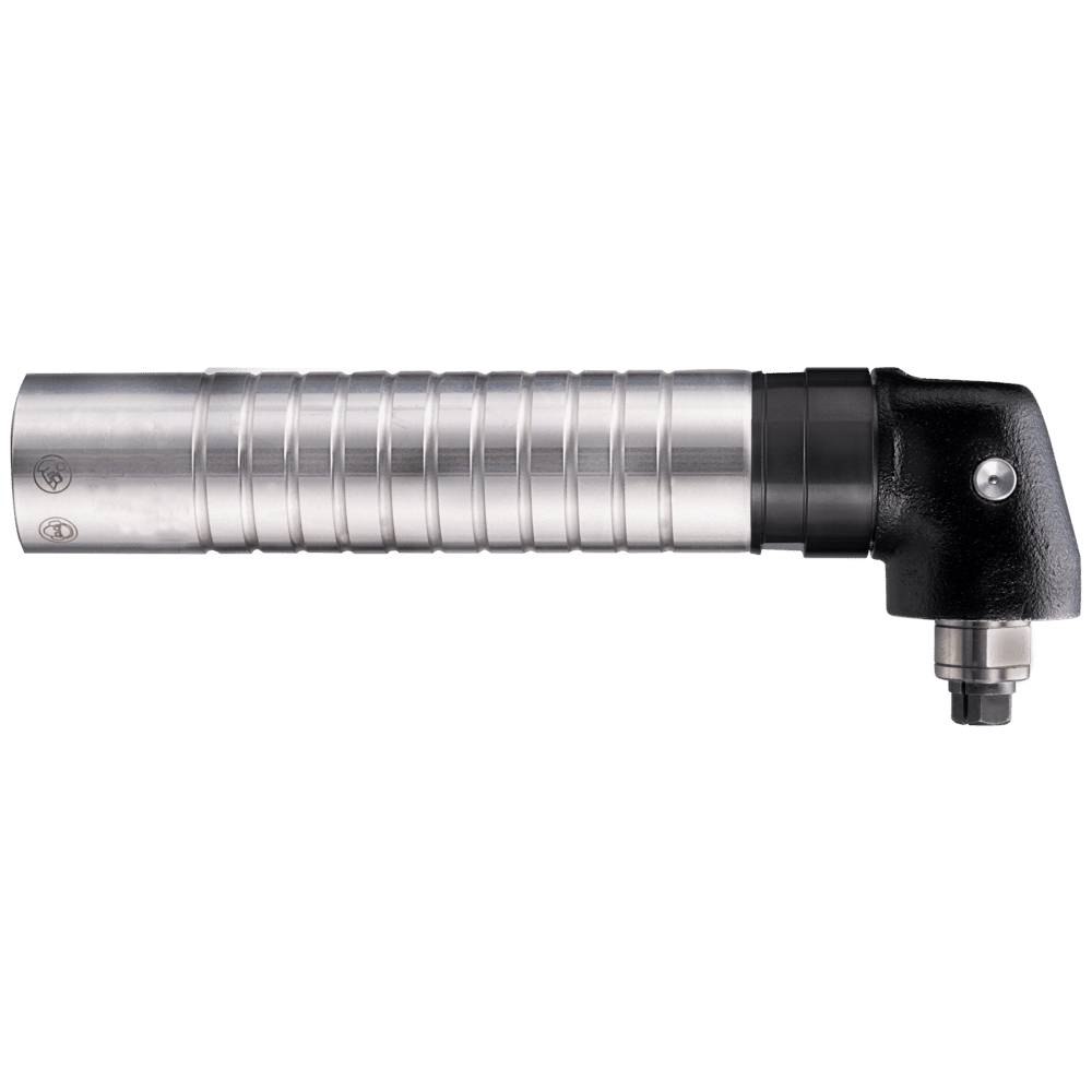 Uhľový nástroj s dizajnom 90° a 6 mm skľučovadlom a G28/priemer 28 mm posuvným spojom, vhodný pre tuhé predĺženia s G28 posuvným spojom. 1 kus z nasledujúcich kľúčov: EM SW 11 mm a EM SW 14 mm, 1 skľučovadlo.