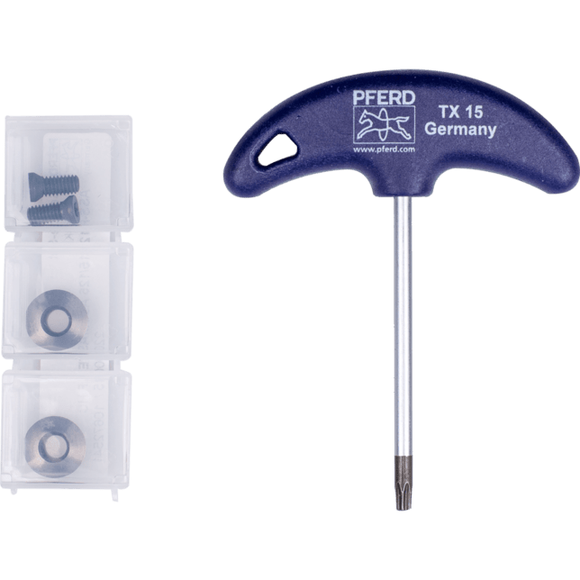 Sada služieb od PFERD TOOLS umožňuje výmenu najbežnejších dielov v prípade straty alebo poškodenia. PFERD TOOLS ponúka súpravu na opravu hrotov pre korunkové píly a sady služieb pre ALUMASTER High Speed Disc a High Speed Torus Cutter. Na výmenu jednotlivých rezacích vložiek na ALUMASTER High Speed Disc. Sada obsahuje dve rezacie vložky, dva skrutky a šesťhranný kľúč.
