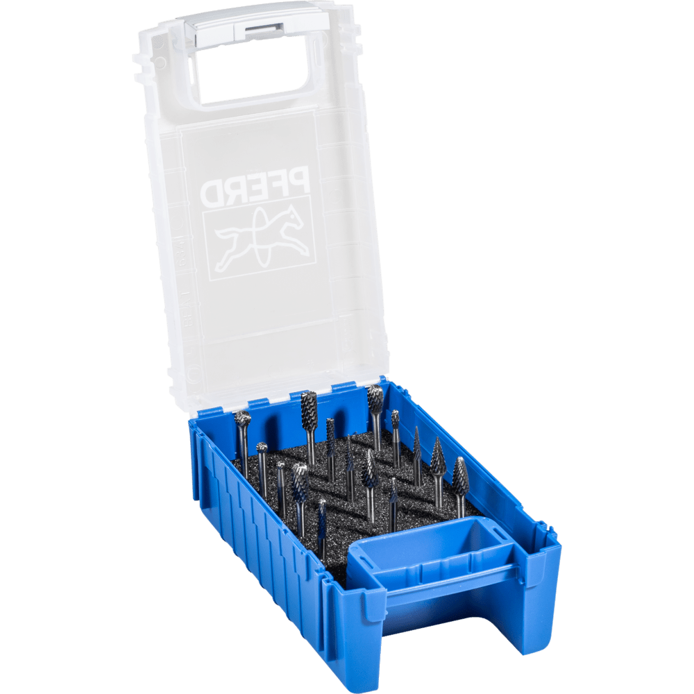 Cut 3 PLUS je priečny rez a je obzvlášť vhodný na obrábanie liatiny, ocele, nehrdzavejúcej ocele (INOX), zliatin na báze niklu a zliatin titánu. Vyznačuje sa vysokou rýchlosťou odstraňovania materiálu. Karbidové frézy pre všeobecné aplikácie sú vhodné na jemné a hrubé odstraňovanie materiálu na kľúčových materiáloch používaných v priemyselnej výrobe. Poskytujú dobrú rýchlosť odstraňovania materiálu a nie sú špecifické pre konkrétny materiál. Sada 1503 – cut 3 PLUS – obsahuje 15 malých karbidových fréz v najbežnejších tvaroch a rozmeroch pre všeobecné aplikácie. Pevná plastová krabička chráni náradie pred nečistotami a poškodením.
