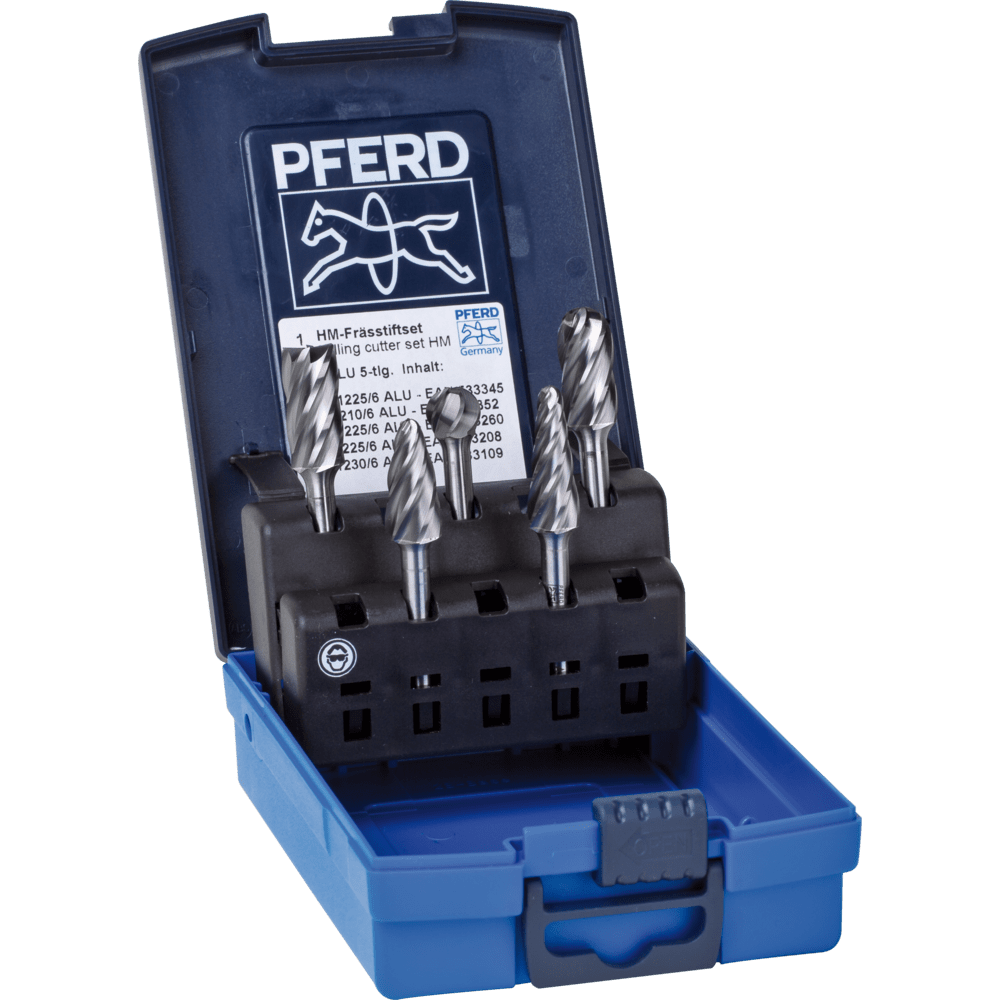 Sada 1612 ALU obsahuje päť karbidových fréz na spracovanie hliníka v najbežnejších tvaroch a rozmeroch. Pevná plastová krabička chráni náradie pred nečistotami a poškodením. Frézy sú zabezpečené na stopkách, čo uľahčuje výber a vyberanie náradia. K dispozícii je ďalších päť slotov pre iné frézy.