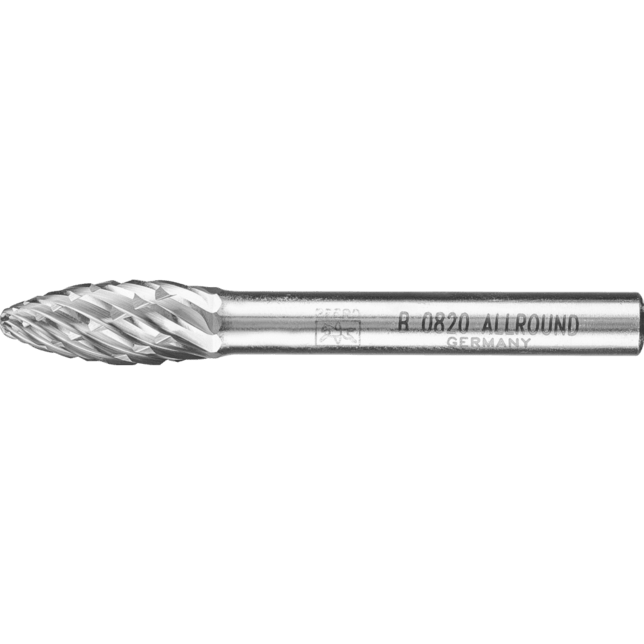 So inovatívnym rezom ALLROUND vyvinula spoločnosť PFERD TOOLS jedinečné frézy na všestranné použitie na kľúčových materiáloch, ako sú oceľ a liatina, nerezová oceľ (INOX), neželezné kovy a liatina. Rez ALLROUND ponúka všetky výhody osvedčeného rezu 3 PLUS, ale jeho rýchlosť odstraňovania materiálu je až o 30 % vyššia pre oceľ. Umožňuje pohodlnú prácu s nižšími vibráciami a menším hlukom. Rez ALLROUND tiež pomáha používateľom ušetriť značný čas pri práci, čím sa stáva ekonomicky efektívnou voľbou. Fréza v tvare plameňa podľa ISO 7755/8.
