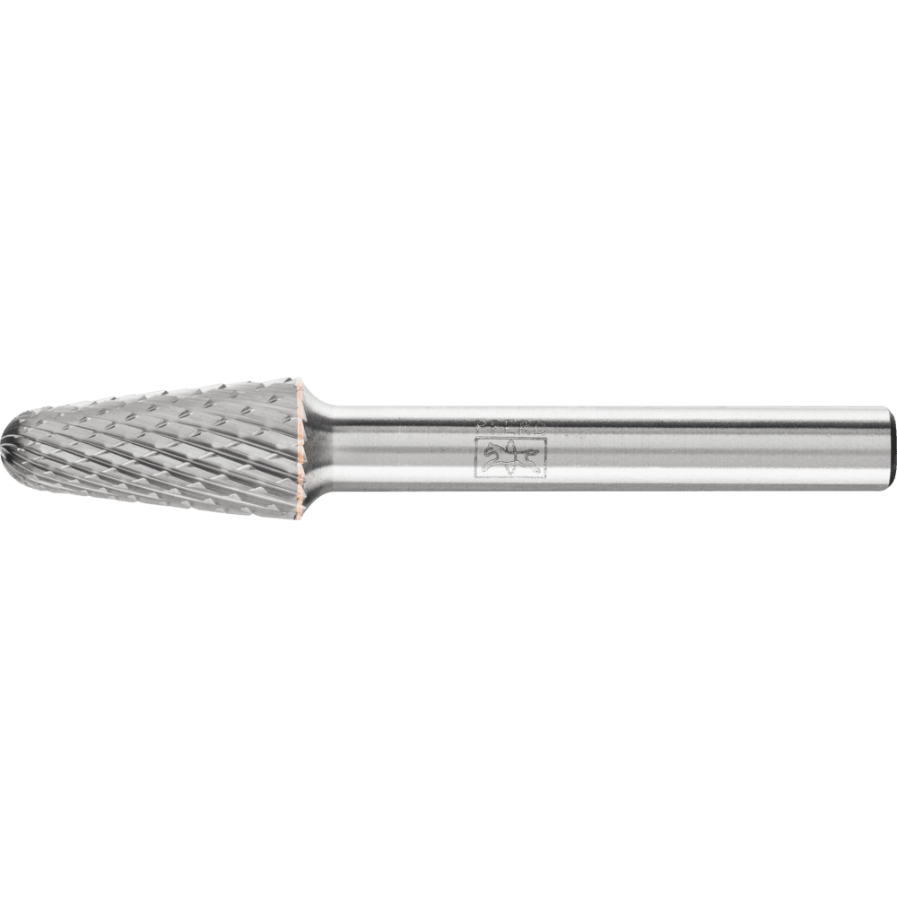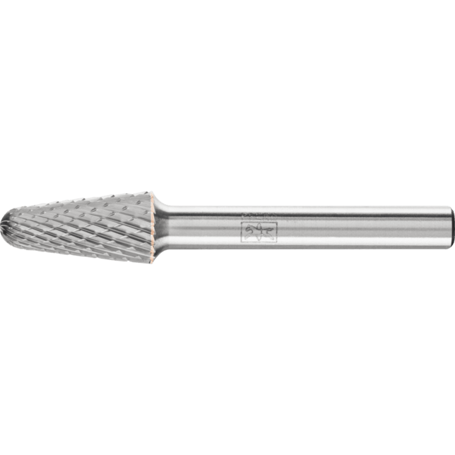 Rez 4 je obzvlášť vhodný na obrábanie nehrdzavejúcej ocele (INOX), ocele a materiálov odolných voči vysokým teplotám, ako sú zliatiny na báze niklu a kobaltu. Vyznačuje sa vysokou rýchlosťou odstraňovania materiálu s krátkymi trieskami a dosahuje dobrý povrch. Karbidové frézy pre všeobecné aplikácie sú vhodné na jemné a hrubé odstraňovanie materiálu na kľúčových materiáloch používaných v priemyselnej výrobe. Poskytujú dobrú rýchlosť odstraňovania materiálu a nie sú špecifické pre konkrétny materiál. Kužeľová fréza s okrúhlym rádiusom podľa DIN 8032 s rezom zodpovedajúcim DIN 8033.