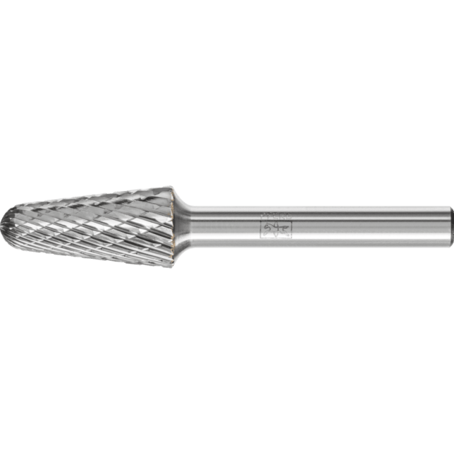 Rezanie s TOUGH profilom bolo vyvinuté špeciálne pre náročné aplikácie v prístavoch, liatňach a oceliarskej výrobe. Je tiež ideálne na použitie vo všetkých výrobných sektoroch, kde sú v dôsledku ťažkých výrobných podmienok časté zlomeniny zubov alebo iné poškodenia konvenčných fréz. Karbidové frézy s TOUGH profilom sú obzvlášť agresívne a vyznačujú sa vysokým odoberaním materiálu. Kužeľová fréza s okrúhlym koncom podľa DIN 8032.
