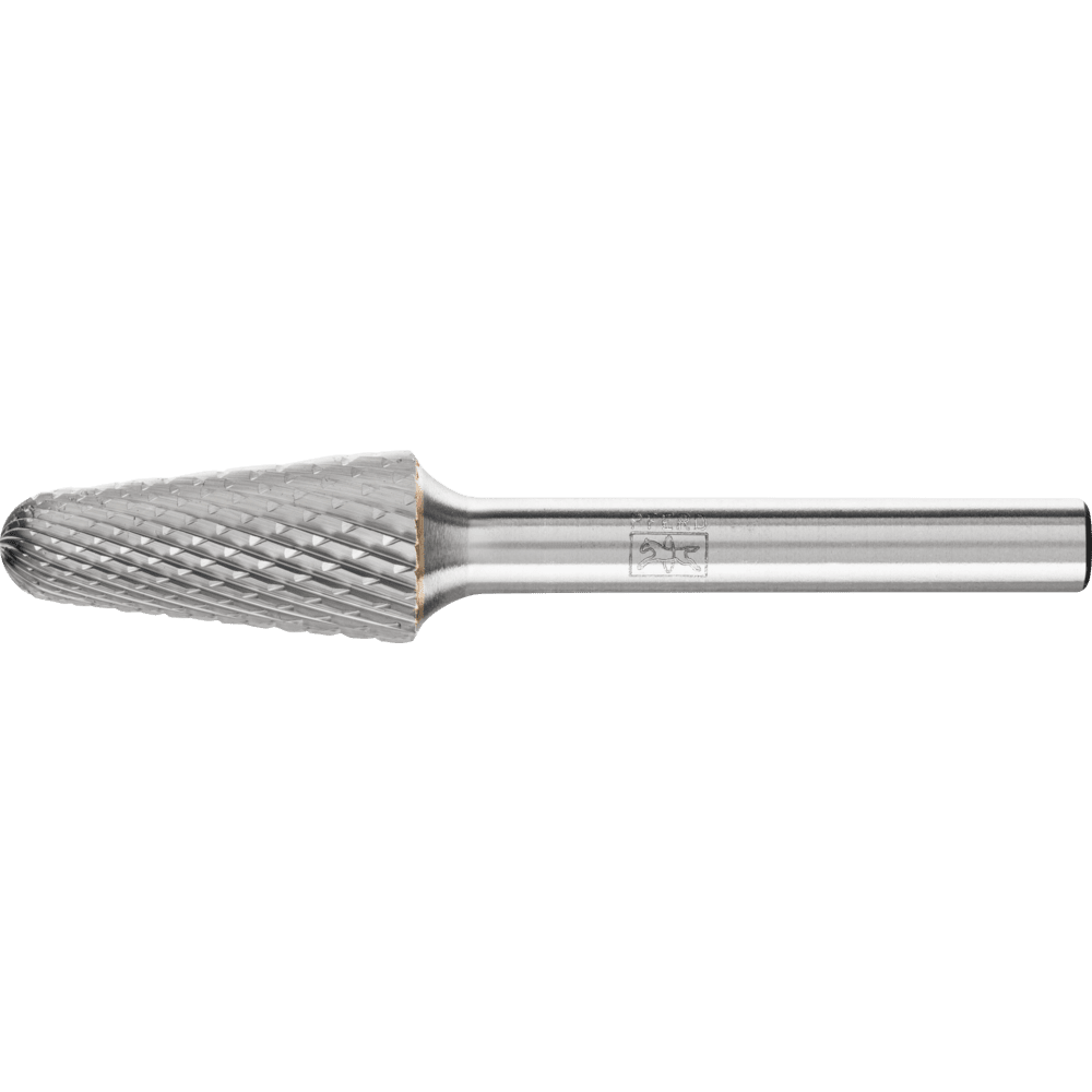 Rez 4 je obzvlášť vhodný na obrábanie nehrdzavejúcej ocele (INOX), ocele a materiálov odolných voči vysokým teplotám, ako sú zliatiny na báze niklu a kobaltu. Vyznačuje sa vysokou rýchlosťou odstraňovania materiálu s krátkymi trieskami a dosahuje dobrý povrch. Karbidové frézy pre všeobecné aplikácie sú vhodné na jemné a hrubé odstraňovanie materiálu na kľúčových materiáloch používaných v priemyselnej výrobe. Poskytujú dobrú rýchlosť odstraňovania materiálu a nie sú špecifické pre konkrétny materiál. Kužeľová fréza s okrúhlym rádiusom podľa DIN 8032 s rezom zodpovedajúcim DIN 8033.