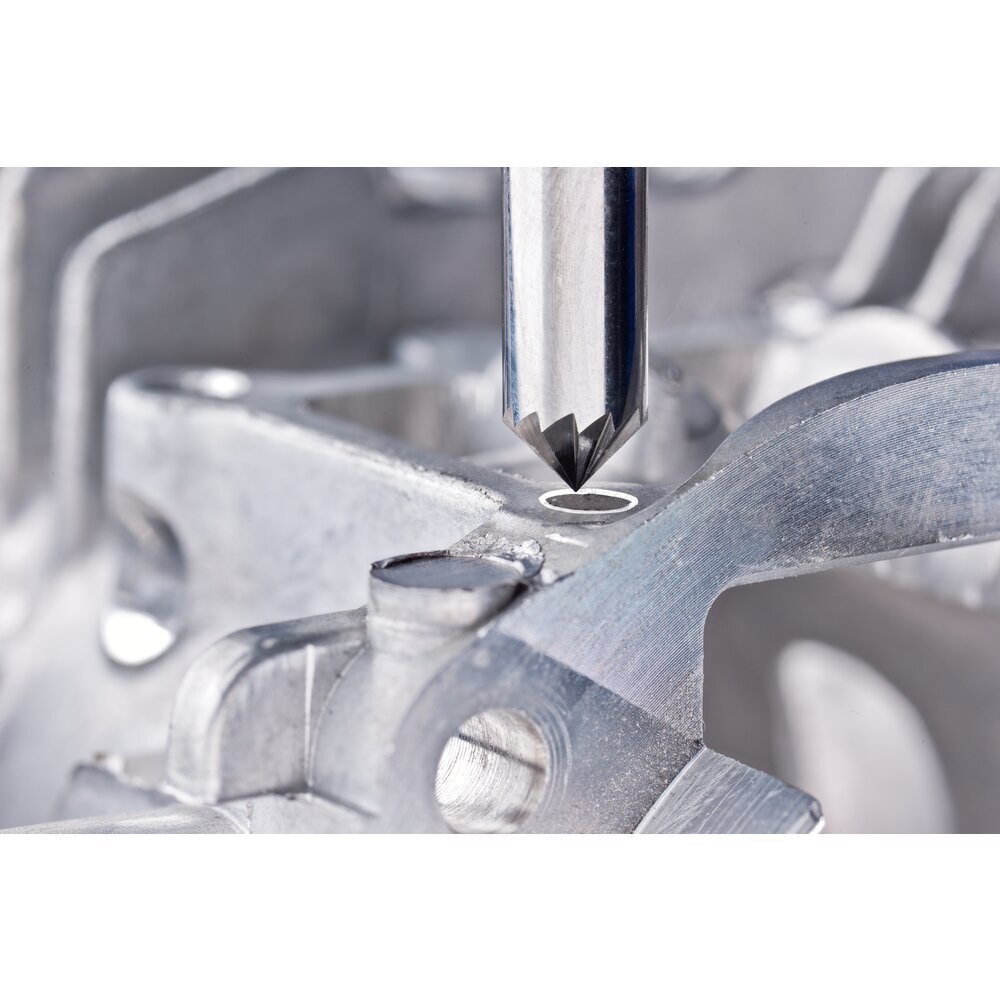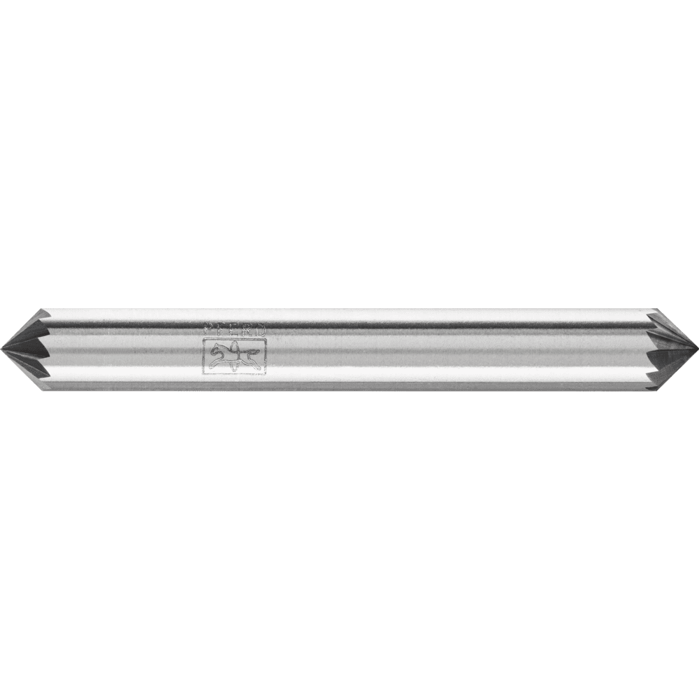 Rez 3 je obzvlášť vhodný na obrábanie liatin, ocele, nerezovej ocele (INOX), zliatin na báze niklu a zliatin titánu. Je charakterizovaný vysokou rýchlosťou odstraňovania materiálu a dosahuje dobrý povrch. Karbidové frézy pre všeobecné aplikácie sú vhodné na jemné a hrubé odstraňovanie materiálu na kľúčových materiáloch používaných v priemyselnej výrobe. Poskytujú dobrú rýchlosť odstraňovania materiálu a nie sú špecifické pre konkrétny materiál. Kužeľová fréza podľa DIN 8032 s rezom zodpovedajúcim DIN 8033, s uhlom (90°). Vhodná na flexibilné zahlbovanie a fazetovanie. Vďaka svojim špeciálnym tvarom dosahujú karbidové frézy pre flexibilnú prácu na hranách takmer presné fazety alebo rádiusy a môžu sa flexibilne používať aj na ťažko prístupných miestach. Hlavne sa používajú v oceliarskej a hliníkovej výrobe a boli špeciálne navrhnuté na fazetovanie, odhrotovanie a zaobľovanie hrán. Tento dizajn je obojstranný, čo znamená, že môže rezať a byť používaný na oboch stranách.