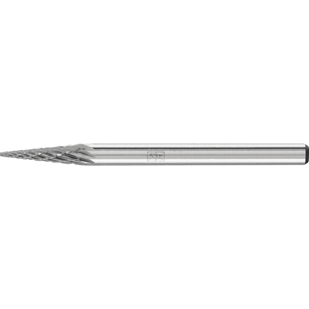 Cut 3 PLUS je priečny rez a je obzvlášť vhodný na obrábanie liatiny, ocele, nerezovej ocele (INOX), zliatin na báze niklu a zliatin titánu. Vyznačuje sa vysokou rýchlosťou odstraňovania materiálu. Karbidové frézy pre všeobecné aplikácie sú vhodné na jemné a hrubé odstraňovanie materiálu na kľúčových materiáloch používaných v priemyselnej výrobe. Poskytujú dobrú rýchlosť odstraňovania materiálu a nie sú špecifické pre konkrétny materiál. Kužeľová fréza podľa DIN 8032 s rezom zodpovedajúcim DIN 8033, zploštený hrot.