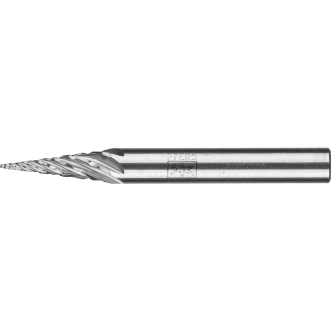 Inovatívny STEEL rez, PFERD TOOLS vyvinul jedinečné frézy na prácu so železom a liatinou. Vyznačujú sa hmatateľne zvýšenou agresivitou a dobrou vedením. Tým zabezpečujú bezpečnú a presnú prácu. Vďaka svojmu mimoriadne vysokému výkonu pri odstraňovaní materiálu, frézy so STEEL rezom pomáhajú používateľom ušetriť značný čas pri práci, čím sa stávajú ekonomicky efektívnou voľbou. Kužeľová hrotová fréza podľa DIN 8032, zploštený hrot.