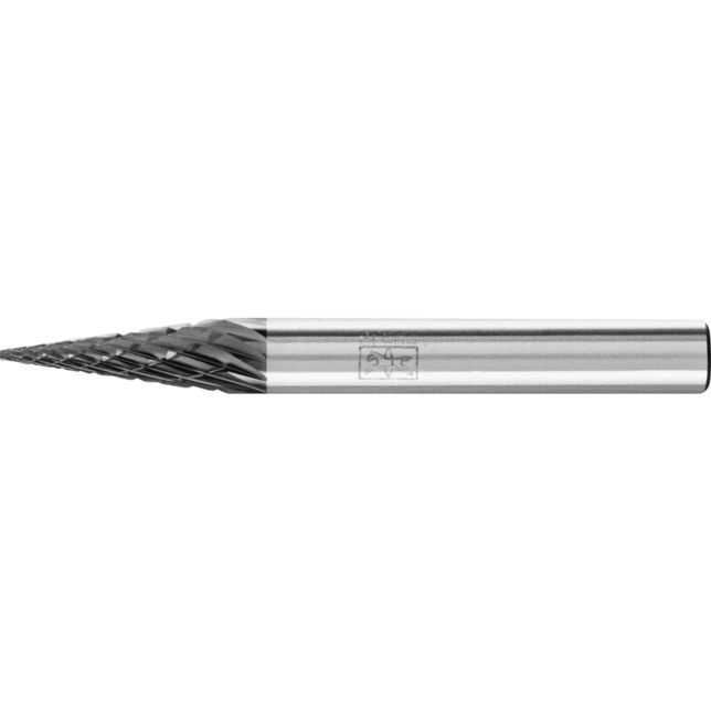 Cut 3 PLUS s povrchovou úpravou HICOAT HC-FEP sa vyznačuje vysokou tvrdosťou a odolnosťou proti opotrebeniu. Umožňuje efektívne odstraňovanie triesok vďaka zlepšeným antilepkavým vlastnostiam a je veľmi odolný voči teplote. Umožňuje dlhšiu životnosť nástroja a použitie pri vyšších rezacích rýchlostiach v porovnaní s nepovrchovo upravenými frézami. Kužeľová hrotová fréza podľa DIN 8032 s rezom zodpovedajúcim DIN 8033, zploštený hrot.