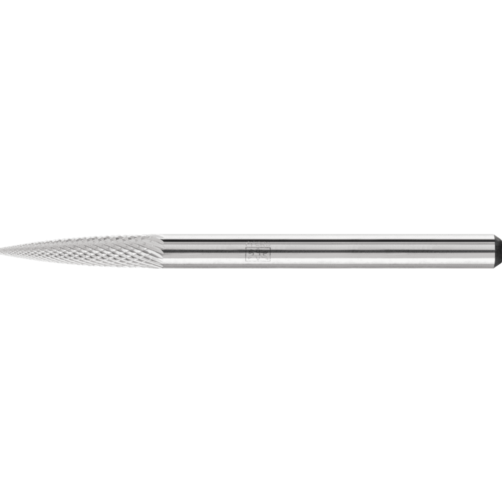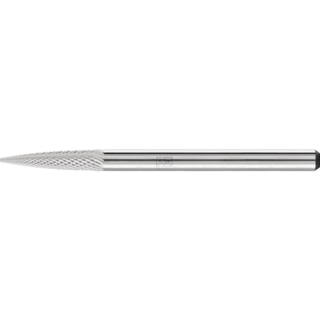 Karbidové frézy s mikro rezom sú špeciálne navrhnuté na jemné odstraňovanie materiálu a používajú sa v oblastiach, kde sa používajú montované/brúsené body, napríklad. Ponúkajú vyššiu rýchlosť odstraňovania materiálu ako montované/brúsené body a ohromujú svojou vysokou kvalitou povrchu. Pracujú tiež s nízkymi vibráciami a malým hlukom. Udržujú svoju geometriu počas celej životnosti nástroja a sú vhodné na manuálne aj strojové aplikácie. Takmer všetky materiály s tvrdosťou až 68 HRC môžu byť obrábané. Špicatá stromová fréza podľa DIN 8032, zploštený hrot.