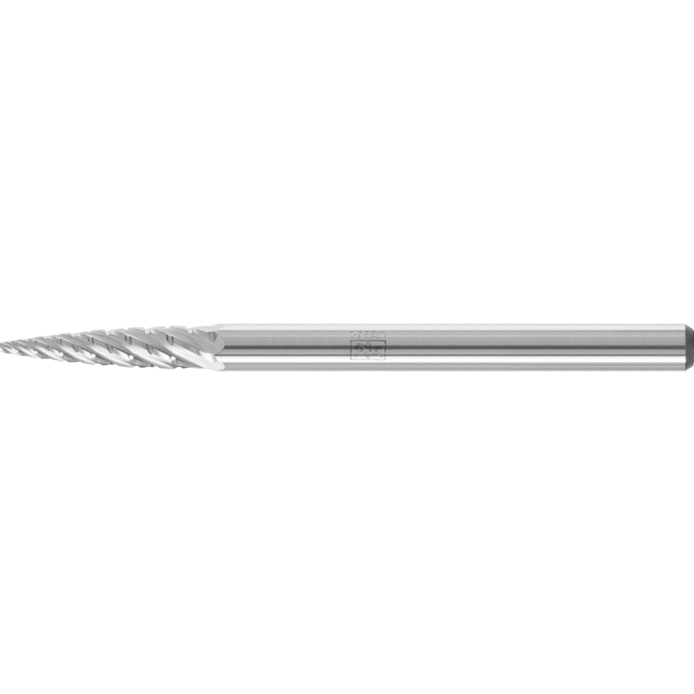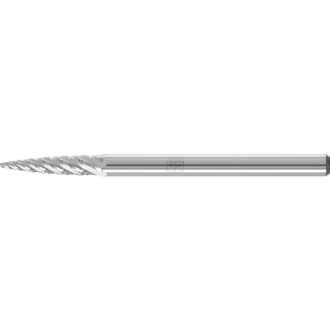 Rez s TITANIUM bol špeciálne vyvinutý na prácu s tvrdými titánovými materiálmi (pevnosť v ťahu > 500 N/mm²). Charakterizuje sa mimoriadne vysokou rýchlosťou odstraňovania materiálu v tejto skupine materiálov, ktorá má veľmi náročné vlastnosti pri odstraňovaní materiálu. Karbidové frézy s rezom TITANIUM sa vyznačujú hladkým frézovaním s výrazne zníženými vibráciami a menším hlukom. Špicatá stromová fréza podľa DIN 8032, zploštený hrot.