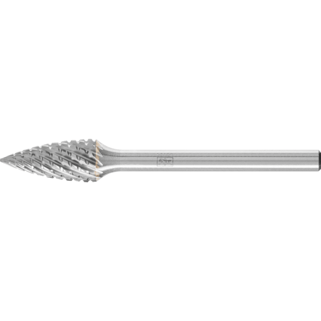 Rez s TITANIUM bol špeciálne vyvinutý na prácu s tvrdými titánovými materiálmi (pevnosť v ťahu > 500 N/mm²). Vyznačuje sa mimoriadne vysokou rýchlosťou odstraňovania materiálu v tejto skupine materiálov, ktorá má veľmi náročné vlastnosti pri odstraňovaní materiálu. Karbidové frézy s rezom TITANIUM sa vyznačujú hladkým frézovaním s výrazne zníženou vibráciou a menším hlukom. Špicatá fréza v tvare stromu podľa DIN 8032, zploštený hrot.