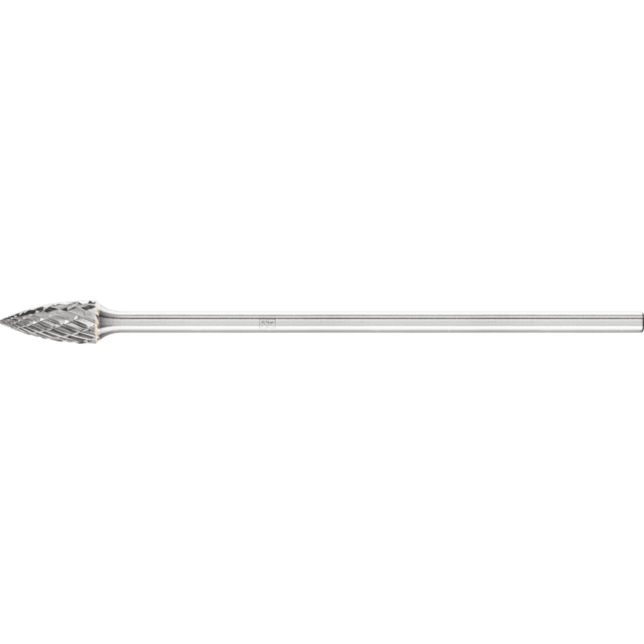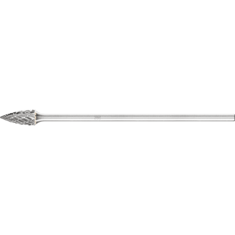Cut 3 PLUS je priečny rez a je obzvlášť vhodný na obrábanie liatiny, ocele, nehrdzavejúcej ocele (INOX), zliatin na báze niklu a zliatin titánu. Vyznačuje sa vysokou rýchlosťou odstraňovania materiálu. Karbidové frézy pre všeobecné aplikácie sú vhodné na jemné a hrubé odstraňovanie materiálu na kľúčových materiáloch používaných v priemyselnej výrobe. Poskytujú dobrú rýchlosť odstraňovania materiálu a nie sú špecifické pre konkrétny materiál. Špicatá stromová fréza podľa DIN 8032 s rezom zodpovedajúcim DIN 8033, zploštený hrot. Karbidové frézy s dlhým stopkou sú ideálne na efektívne obrábanie malých, ťažko prístupných oblastí komponentov. Môžu byť skrátené, ak je to potrebné. Táto verzia má dlhú oceľovú stopku.