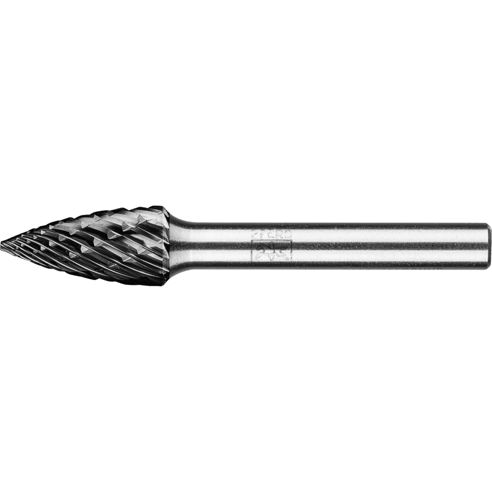 Vysokovýkonný rezací nástroj ALLROUND s HICOAT povrchovou úpravou HC-FEP sa vyznačuje vysokou tvrdosťou a odolnosťou proti opotrebeniu. Umožňuje efektívne odstraňovanie triesok vďaka zlepšeným antilepkavým vlastnostiam a je veľmi odolný voči teplote. Umožňuje dlhšiu životnosť nástroja a použitie pri vyšších rezacích rýchlostiach v porovnaní s nepovrchovo upravenými frézami. Špicatá stromová fréza podľa DIN 8032, zploštený hrot.