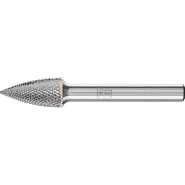 Karbidové frézy s mikro rezom sú špeciálne navrhnuté na jemné odstraňovanie materiálu a používajú sa v oblastiach, kde sa používajú montované/brúsené body, napríklad. Ponúkajú vyššiu rýchlosť odstraňovania materiálu ako montované/brúsené body a ohromujú svojou vysokou kvalitou povrchu. Pracujú tiež s nízkymi vibráciami a malým hlukom. Udržujú svoju geometriu počas celej životnosti náradia a sú vhodné na manuálne aj strojové aplikácie. Takmer všetky materiály s tvrdosťou do 68 HRC môžu byť obrábané. Špicatá stromová fréza podľa DIN 8032, zploštený hrot.