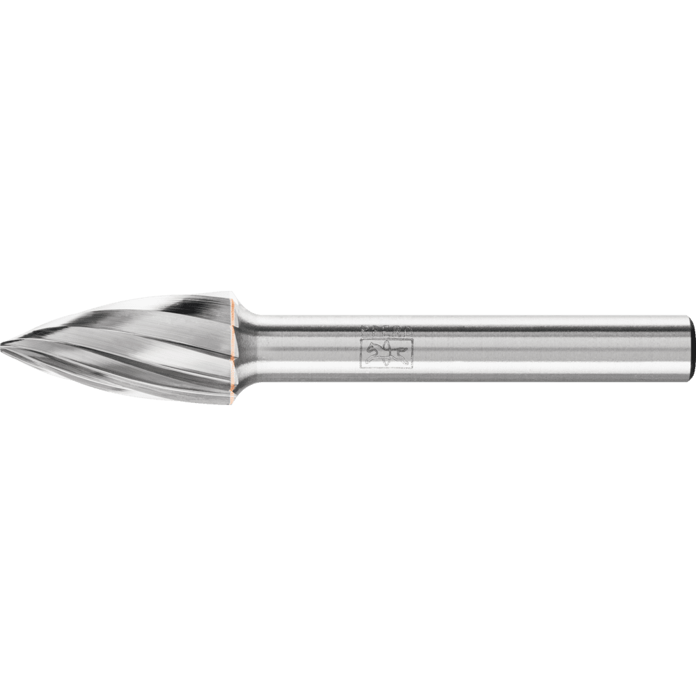 Rez 1 je obzvlášť vhodný na obrábanie neželezných kovov, ocele a liatiny. Je charakterizovaný vysokou rýchlosťou odstraňovania materiálu. Karbidové frézy pre všeobecné aplikácie sú vhodné na jemné a hrubé odstraňovanie materiálu na kľúčových materiáloch používaných v priemyselnej výrobe. Poskytujú dobrú rýchlosť odstraňovania materiálu a nie sú špecifické pre konkrétny materiál. Špicatá stromová fréza podľa DIN 8032 s rezom zodpovedajúcim DIN 8033, zploštený hrot.