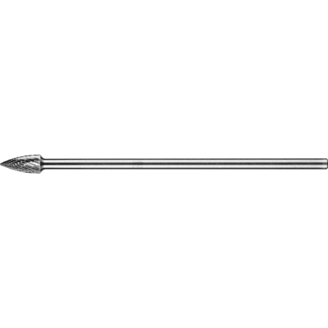 Cut 3 PLUS je priečny rez a je obzvlášť vhodný na obrábanie liatiny, ocele, nehrdzavejúcej ocele (INOX), zliatin na báze niklu a zliatin titánu. Vyznačuje sa vysokou rýchlosťou odstraňovania materiálu. Karbidové frézy pre všeobecné aplikácie sú vhodné na jemné a hrubé odstraňovanie materiálu na kľúčových materiáloch používaných v priemyselnej výrobe. Poskytujú dobrú rýchlosť odstraňovania materiálu a nie sú špecifické pre konkrétny materiál. Špicatá stromová fréza podľa DIN 8032 s rezom zodpovedajúcim DIN 8033, zploštený hrot. Karbidové frézy s dlhým stopkou sú ideálne na efektívne obrábanie malých, ťažko prístupných oblastí komponentov. Môžu byť skrátené, ak je to potrebné. Táto verzia má dlhú oceľovú stopku.