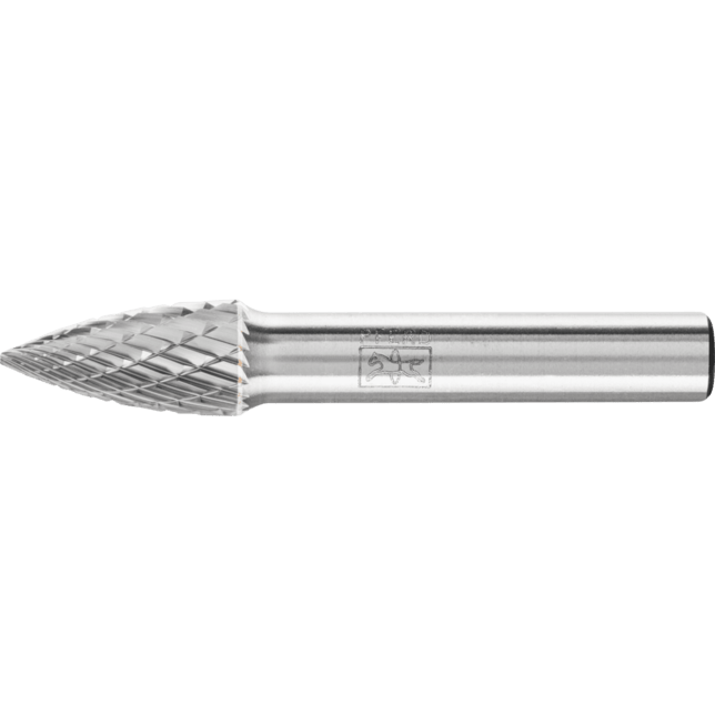 Cut 3 PLUS je krížový rez a je obzvlášť vhodný na obrábanie liatiny, ocele, nehrdzavejúcej ocele (INOX), zliatin na báze niklu a zliatin titánu. Vyznačuje sa vysokou rýchlosťou odstraňovania materiálu. Karbidové frézy pre všeobecné aplikácie sú vhodné na jemné a hrubé odstraňovanie materiálu na kľúčových materiáloch používaných v priemyselnej výrobe. Poskytujú dobrú rýchlosť odstraňovania materiálu a nie sú špecifické pre konkrétny materiál. Špicatá stromová fréza podľa DIN 8032 s rezom zodpovedajúcim DIN 8033, zploštený hrot.
