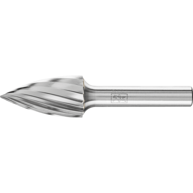 Rez 1 je obzvlášť vhodný na obrábanie neželezných kovov, ocele a liatiny. Je charakterizovaný vysokou rýchlosťou odstraňovania materiálu. Karbidové frézy pre všeobecné aplikácie sú vhodné na jemné a hrubé odstraňovanie materiálu na kľúčových materiáloch používaných v priemyselnej výrobe. Poskytujú dobrú rýchlosť odstraňovania materiálu a nie sú špecifické pre konkrétny materiál. Špicatá stromová fréza podľa DIN 8032 s rezom zodpovedajúcim DIN 8033, zploštený hrot.