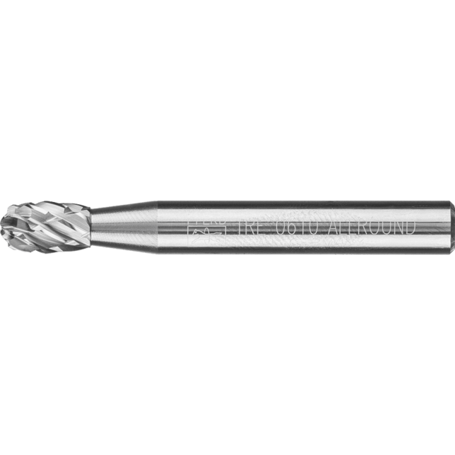 So inovatívnym rezom ALLROUND vyvinula spoločnosť PFERD TOOLS jedinečné frézy na všestranné použitie na kľúčových materiáloch, ako sú oceľ a liatina, nerezová oceľ (INOX), neželezné kovy a liatina. Rez ALLROUND ponúka všetky výhody osvedčeného rezu 3 PLUS, ale jeho rýchlosť odstraňovania materiálu je až o 30 % vyššia pre oceľ. Umožňuje pohodlnú prácu s nižšími vibráciami a menším hlukom. Rez ALLROUND tiež pomáha používateľom ušetriť značný čas pri práci, čím sa stáva ekonomicky efektívnou voľbou. Oválna fréza podľa DIN 8032.