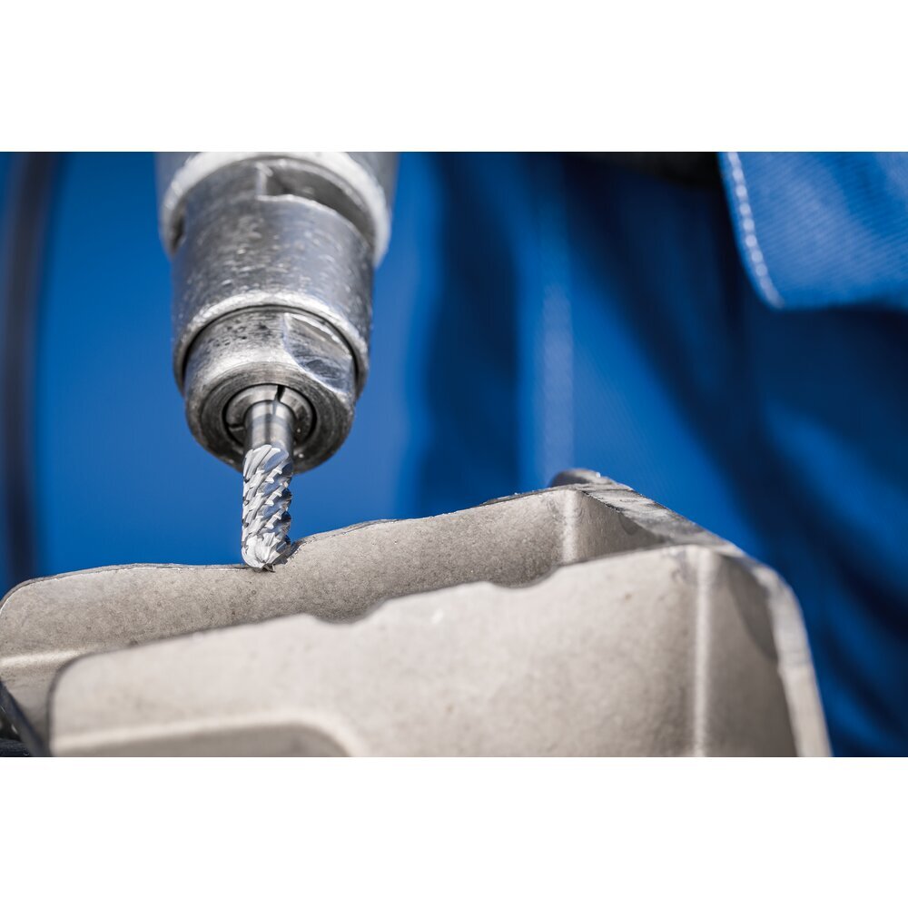Rez s TITANIUM bol špeciálne vyvinutý na prácu s tvrdými titánovými materiálmi (pevnosť v ťahu > 500 N/mm²). Vyznačuje sa mimoriadne vysokou rýchlosťou odstraňovania materiálu v tejto skupine materiálov, ktorá má veľmi náročné vlastnosti pri odstraňovaní materiálu. Karbidové frézy s rezom TITANIUM sa vyznačujú hladkým frézovaním s výrazne zníženými vibráciami a menším hlukom. Valcová fréza s polomerovým koncom podľa DIN 8032. Kombinácia valcových a guľových geometrických tvarov.