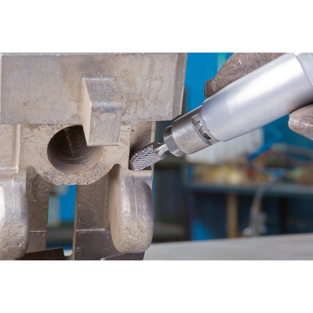 TOUGH rezanie bolo vyvinuté špeciálne pre náročné aplikácie v prístavoch, liatňach a oceliarskej výrobe. Je tiež ideálne na použitie vo všetkých výrobných sektoroch, kde sú v dôsledku ťažkého výrobného prostredia časté zlomeniny zubov alebo iné poškodenia konvenčných fréz. Karbidové frézy s TOUGH rezaním sú obzvlášť agresívne a vyznačujú sa vysokým odoberaním materiálu. Valcová fréza s polomerovým koncom podľa DIN 8032. Kombinácia valcových a guľových geometrických tvarov.