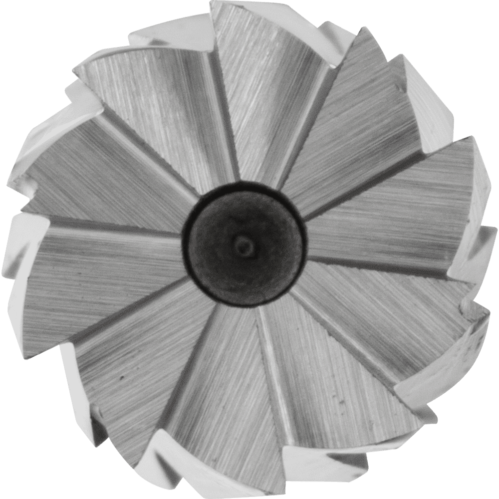 Rez 4 je obzvlášť vhodný na obrábanie nehrdzavejúcej ocele (INOX), ocele a materiálov odolných voči vysokým teplotám, ako sú zliatiny na báze niklu a kobaltu. Vyznačuje sa vysokou rýchlosťou odstraňovania materiálu s krátkymi trieskami a dosahuje dobrý povrch. Karbidové frézy pre všeobecné aplikácie sú vhodné na jemné a hrubé odstraňovanie materiálu na kľúčových materiáloch používaných v priemyselnej výrobe. Poskytujú dobrú rýchlosť odstraňovania materiálu a nie sú špecifické pre konkrétny materiál. Valcová fréza podľa DIN 8032 s obvodovým a koncovým rezom v súlade s DIN 8033.