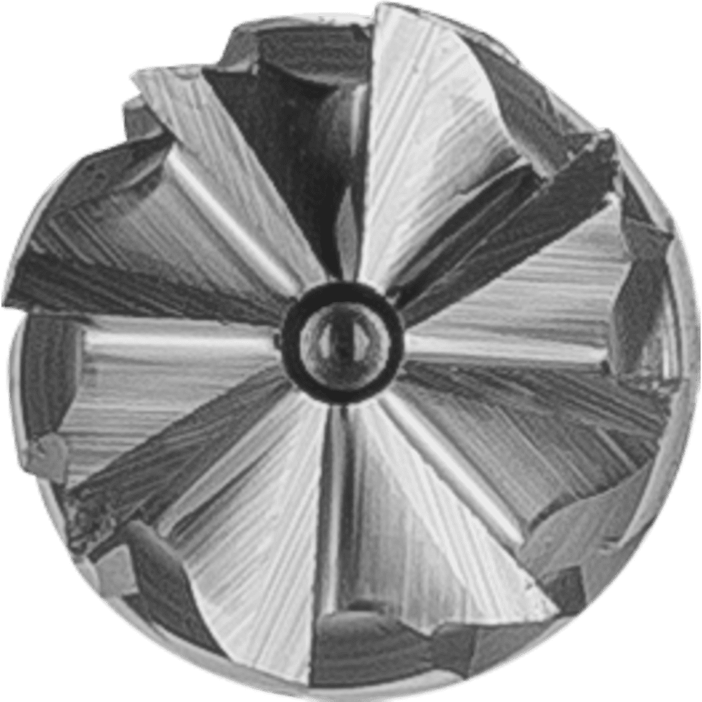 - Výrazne lepšia rýchlosť odstraňovania materiálu ako frézy s konvenčným priečnym rezom.