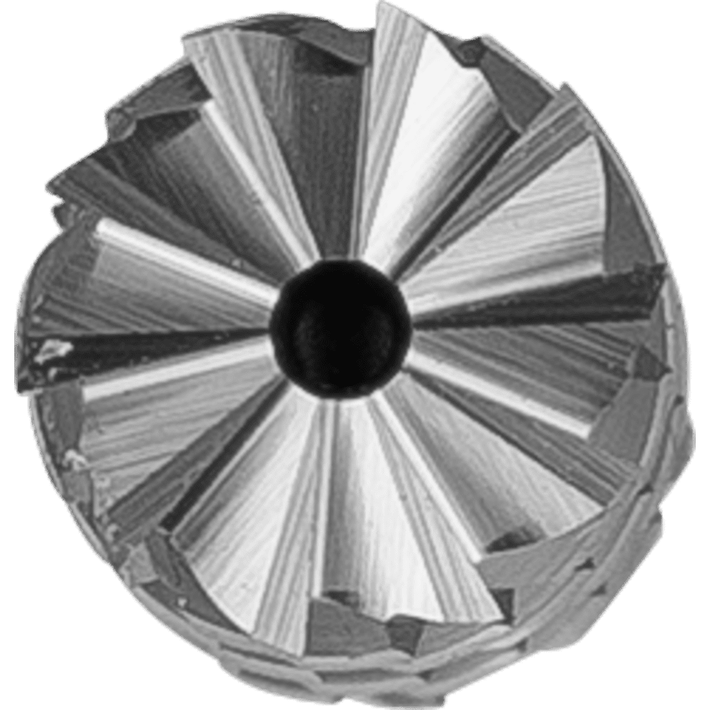 - Výrazne lepšia rýchlosť odstraňovania materiálu ako frézy s konvenčným priečnym rezom.