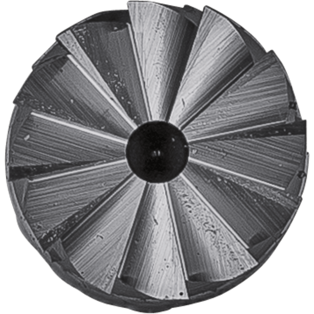- Až 100 % vyššia rýchlosť odstraňovania materiálu pri použití na liatinu v porovnaní s konvenčnými brúsnymi nástrojmi s priečnym rezom.