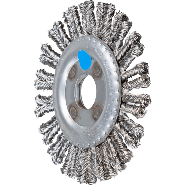 Veľmi agresívny a robustný štetec, ktorý je schopný odolávať vysokým mechanickým zaťaženiam. Ideálny na ťažké čistenie v potrubnej a kontajnerovej výstavbe. Okrem štetcov s vláknami z nehrdzavejúcej ocele ponúka PFERD TOOLS aj štetce na prácu s nehrdzavejúcou oceľou (INOX) typu INOX-TOTAL. Sú obzvlášť vhodné na použitie v extrémne kritických prostrediach. Aby sa splnili osobitné požiadavky na prácu s nehrdzavejúcou oceľou (INOX), PFERD TOOLS používa kvalitu drôtu 1.4310 (V2A) pre všetky INOX štetce. Praktické skúsenosti z priemyslu ukázali, že to ponúka veľmi dobrú odolnosť voči korózii s optimálnou životnosťou nástroja. Všetky štetce PFERD TOOLS s INOX vláknami sú farebne označené modrou farbou a sú vhodné na použitie na všetkých nehrdzavejúcich oceľach (INOX), ako je V4A. Kvalita drôtu 1.4310 má tendenciu stať sa feromagnetickou pri studenom spracovaní; t.j. môže byť priťahovaná magnetmi. Dôvodom je zmena mikroštruktúry spôsobená deformáciou (napr. počas procesu ťahania drôtu). To nemá žiadny vplyv na kvalitu a odolnosť voči korózii INOX vlákna. Vlákno je stále odolné voči korózii. Drôt z nehrdzavejúcej ocele (INOX) odoláva teplotám až do 450 °C. Štetec je odmasťovaný a nezanecháva žiadne olejové zvyšky na obrobku.