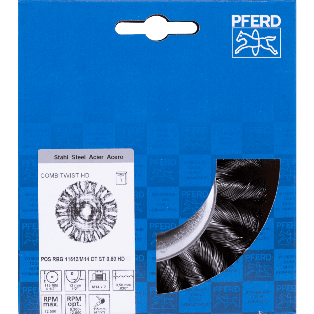 Veľmi agresívny štetec. Vhodný na ťažké brúsenie v kovovýrobe, ako je odstraňovanie vodného kameňa, hrdze, deburringu, čistenie zvarových švov a odstraňovanie zvyškov lepidla a striekancov. Oceľové drôty sú najbežnejším materiálom vlákien. Štetce s oceľovým drôtom ako materiálom vlákien sú obzvlášť vhodné na prácu na povrchoch a deburring. Špeciálny drôt PFERD TOOLS má vysokú pevnosť v ťahu a únosnosť ohybu. To zabezpečuje, že drôt sa opotrebováva optimálnym spôsobom, ako aj dlhú životnosť náradia, aj v extrémnych brúsiacich aplikáciách. Oceľový drôt odoláva teplotám až do 300 °C.