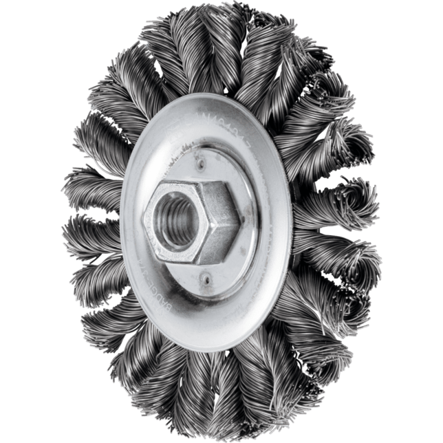 - Agresívny brúsiaci efekt vďaka veľmi pevným drôteným uzlom.