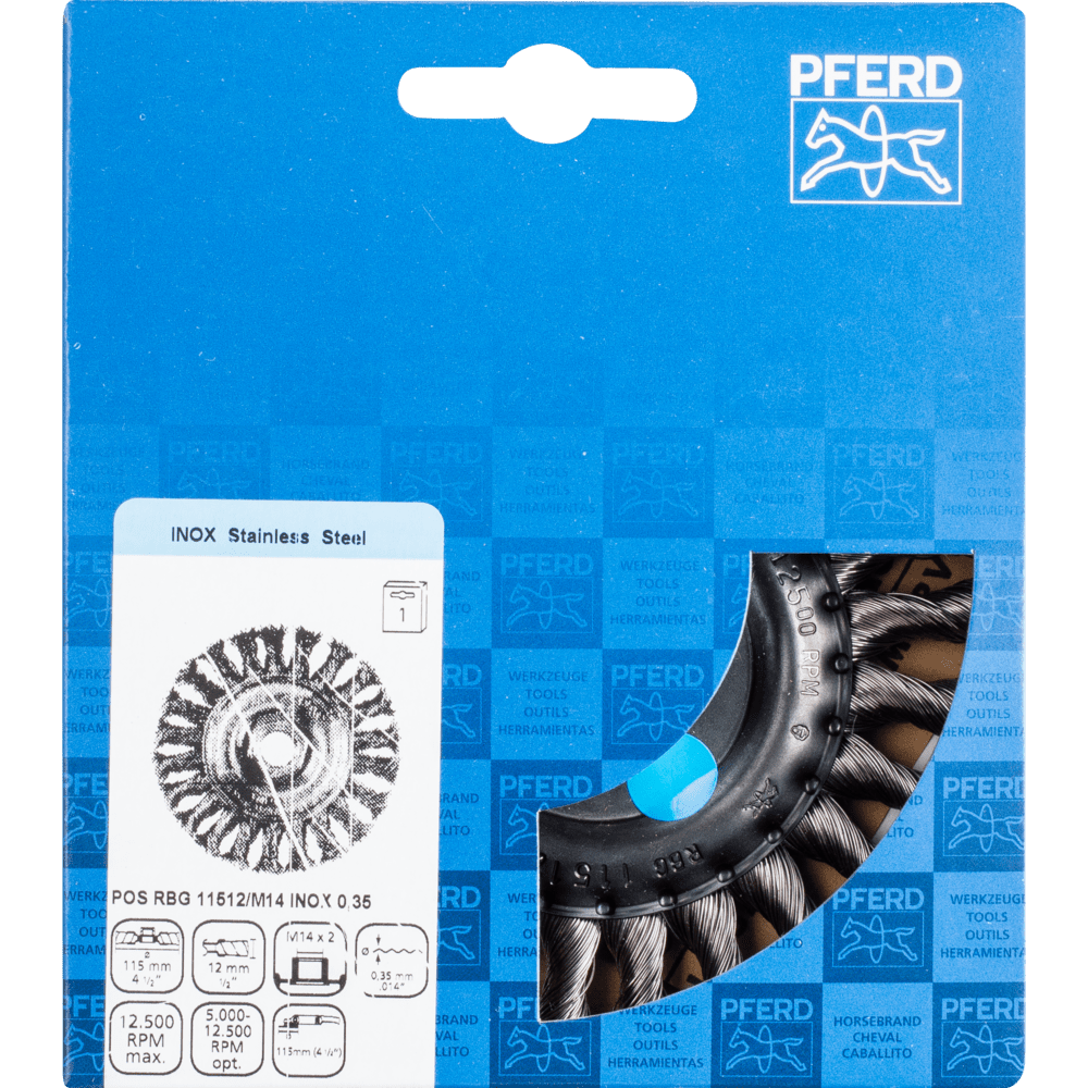 Aggresívny štetec. Vhodný na ťažké brúsenie v kovovýrobe, ako je odstraňovanie vodného kameňa, hrdze, deburringu, čistenie zvarových švov, odstraňovanie zvyškov lepidla a striekancov. Aby sa splnili osobitné požiadavky na prácu s nerezovou oceľou (INOX), PFERD TOOLS používa drôtovú kvalitu 1.4310 (V2A) pre všetky INOX štetce. Praktické skúsenosti z priemyslu ukázali, že to ponúka veľmi dobrú odolnosť voči korózii s optimálnou životnosťou nástroja. Všetky štetce PFERD TOOLS s INOX vláknami sú farebne označené modrou farbou a sú vhodné na použitie na všetkých nerezových oceľach (INOX), ako je V4A. Drôtová kvalita 1.4310 má tendenciu stať sa feromagnetickou pri studenom spracovaní; t.j. môže byť priťahovaná magnetmi. Dôvodom je zmena mikroštruktúry spôsobená deformáciou (napr. počas procesu ťahania drôtu). To nemá žiadny vplyv na kvalitu a odolnosť voči korózii INOX vlákna. Vlákno je stále odolné voči korózii. Nerezový drôt (INOX) odoláva teplotám až do 450 °C.