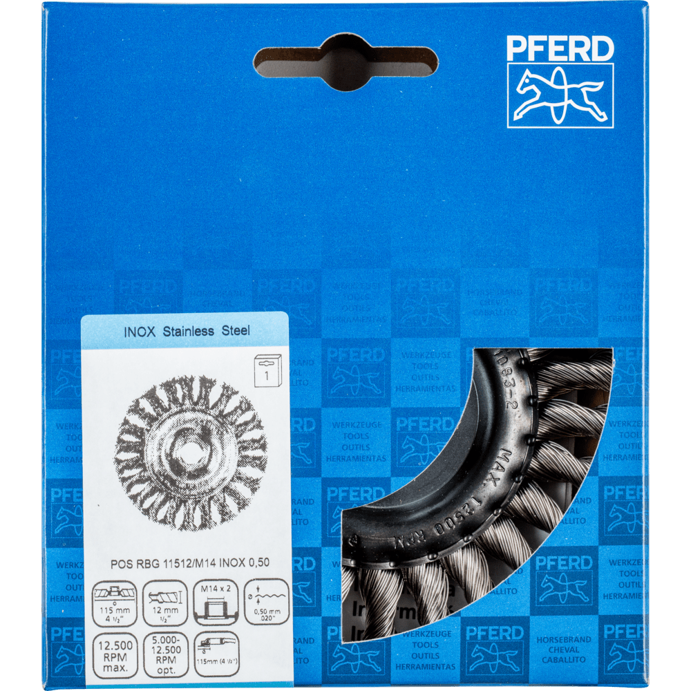 Aggresívny štetec. Vhodný na ťažké brúsenie v kovovýrobe, ako je odstraňovanie vodného kameňa, hrdze, deburringu, čistenie zvarových švov, odstraňovanie zvyškov lepidla a striekancov. Aby sa splnili osobitné požiadavky na prácu s nehrdzavejúcou oceľou (INOX), PFERD TOOLS používa drôtovú kvalitu 1.4310 (V2A) pre všetky INOX štetce. Praktické skúsenosti z priemyslu ukázali, že to ponúka veľmi dobrú odolnosť voči korózii s optimálnou životnosťou nástroja. Všetky štetce PFERD TOOLS s INOX vláknami sú farebne označené modrou farbou a sú vhodné na použitie na všetkých nehrdzavejúcich oceľach (INOX), ako je V4A. Drôtová kvalita 1.4310 má tendenciu stať sa feromagnetickou pri studenom spracovaní; t.j. môže byť priťahovaná magnetmi. Dôvodom je zmena mikroštruktúry spôsobená deformáciou (napr. počas procesu ťahania drôtu). To nemá žiadny vplyv na kvalitu a odolnosť voči korózii INOX vlákna. Vlákno je stále odolné voči korózii. Drôt z nehrdzavejúcej ocele (INOX) odoláva teplotám až do 450 °C.