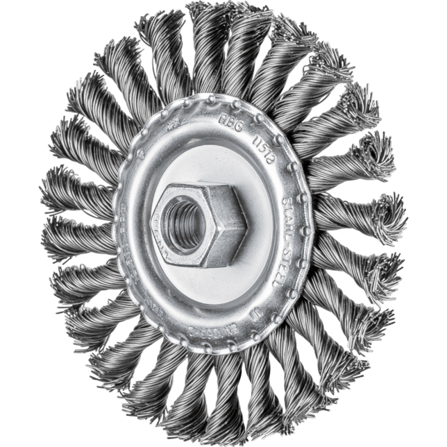 Aggresívny štetec. Vhodný na ťažké brúsenie v kovovýrobe, ako je odstraňovanie rzi, odstraňovanie zvyškov lepidla a striekancov, čistenie zvarových švov a odstraňovanie otupenín. Oceľové drôty sú najbežnejším materiálom vlákien. Štetce s oceľovými drôtmi ako materiálom vlákien sú obzvlášť vhodné na prácu na povrchoch a odstraňovanie otupenín. Špeciálny drôt PFERD TOOLS má vysokú pevnosť v ťahu a únosnosť ohybu. To zabezpečuje optimálne opotrebovanie drôtu, ako aj dlhú životnosť náradia, aj pri extrémnych brúsiacich aplikáciách. Oceľový drôt odoláva teplotám až do 300 °C.
